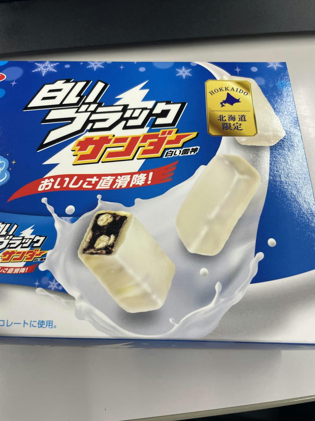 北海道限定商品なので諦めていましたが、ネットで買うことが出来ました。ブラックサンダーは間違いない美味しさで、ずっとファンです。白いブラックサンダーは北海道らしいホワイトチョココーティングでまろやか。大満足です。差し上げた皆さんはとても喜んで下さいました。